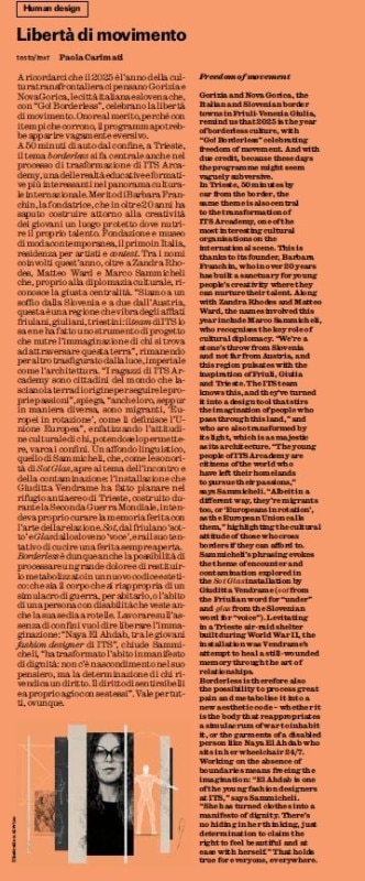 Paola Carimati celebrates the Go! Borderless initiative, a tribute to the freedom of movement between Gorizia and Nova Gorica, and highlights the fertile creative ground of ITS Arcademy in Trieste, a melting pot of talent and cultural exchange. Minimalism in design finds sophisticated expression in the work of Muller Van Severen, presented by Loredana Mascheroni, a harmonious dialogue between sculpture and function that translates into objects of exquisite simplicity.