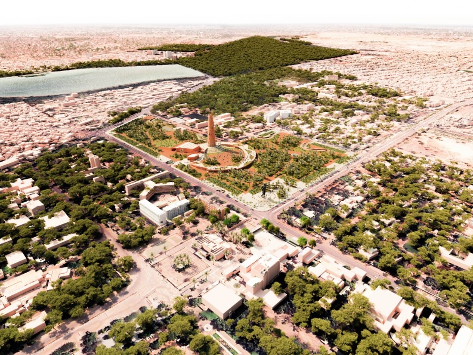 The work is the first piece of the larger Parc Mémorial Thomas Sankara, also designed by Kéré Architecture, initiated by the Comité International pour le Mémorial Thomas Sankara and financed by the government of Burkina Faso: a 14-hectare area which, in addition to the memorial ( acting as a ceremonial centre) will house an amphitheatre, shops, restaurants, cultural spaces and a 100-metre-high tower located on the precise spot of the assassination: from the 87-metre-high terrace of the tower (in memory of the murder year), the gaze will sweep over the city of Ouagadougou and into the future, inspiring new generations to carry on a cultural heritage which has survived violence.