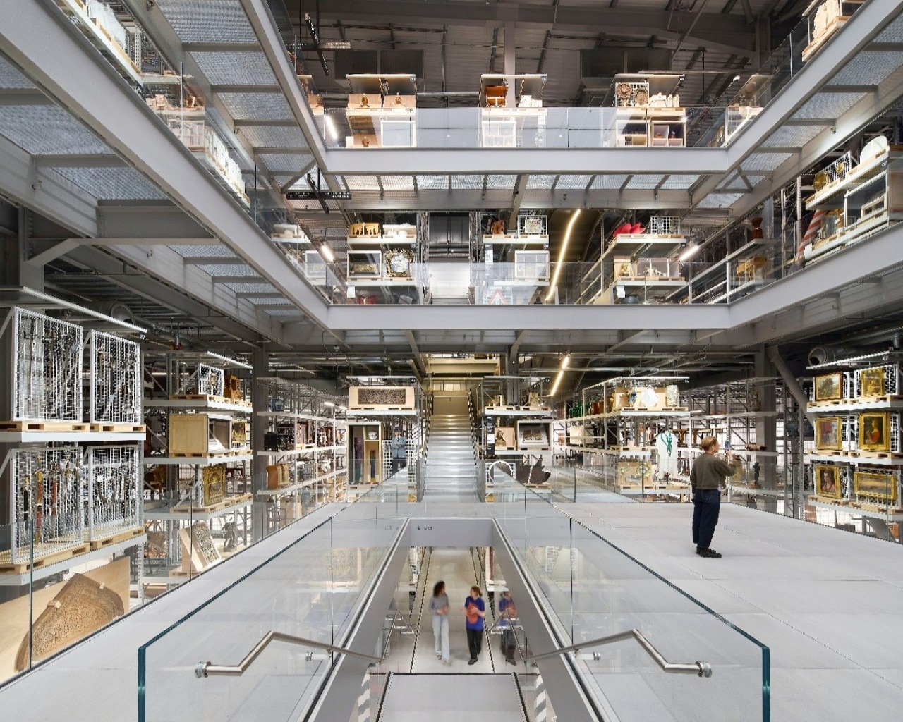 Following in the footsteps of Mvrdv's Depot Boijmans Van Beuningen in Rotterdam, the work is pioneering in the field of museography, proposing to “hybridise” the concept of exhibition space (for representation) with that of archive and repository (for technical and support purposes) and taking the visitor behind the scenes of the museum, to discover a heritage that is often not visible and now put within everyone's reach through a free, self-guided experience.