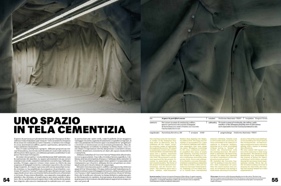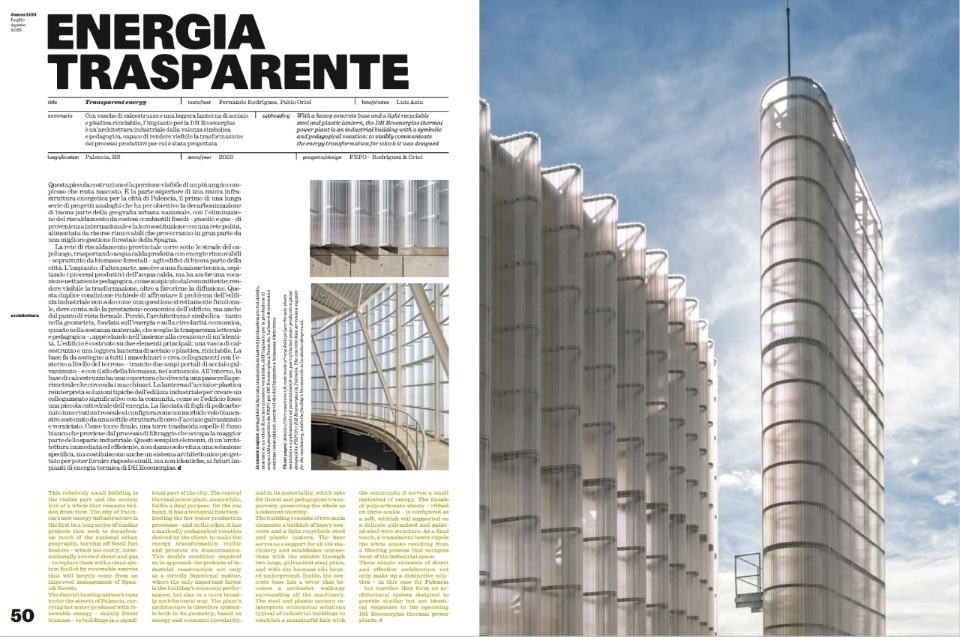 FRPO – Rodríguez & Oriol unveil "Transparent Energy" with the DH Ecoenergías plant in Palencia, a structure that combines a concrete base with a lightweight lantern of steel and recyclable plastic. MVRDV invites us to a "Soft Urban Plaza" with the Mega Mat in Bangkok, a giant modular carpet made of recycled plastic mats. Guillermo Santomà + TEST bring us into "A Space in Cementitious Canvas" with the Gimaguas store in Barcelona, where the ceiling, walls, and floor were clad with in-situ hardened Concrete Canvas.