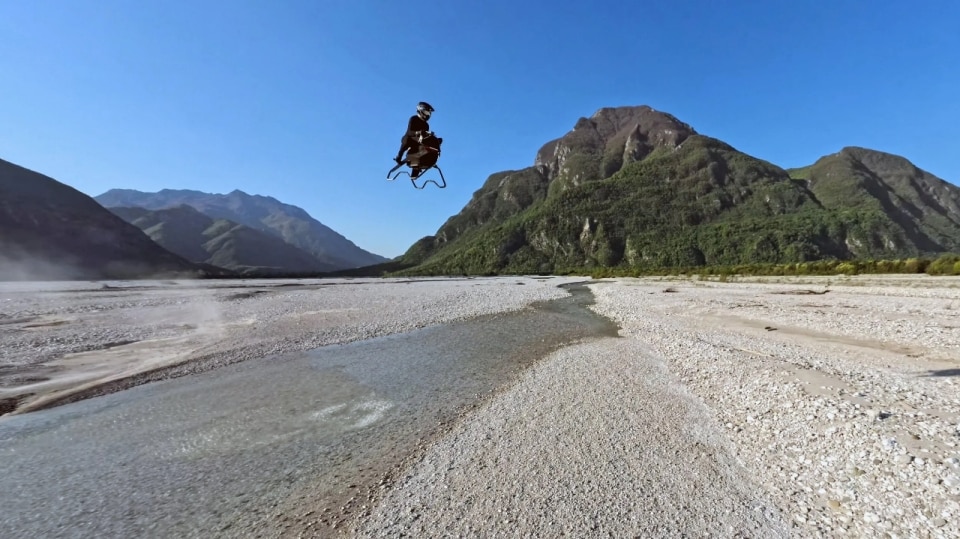 The single-occupancy flying superbike is powered by a jet engine and can carry one person, reaching speeds of up to 200 km/h. However, to classify the bike as an FAA ultralight, the top speed will be limited to 102 km/h. The Airbike is stabilized through a computerized system that provides automatic hover, making it easier to control for the rider. Given the small fuel tank and extreme weight requirements that limit the amount of fuel available, the Airbike can only fly for about 10 minutes at a time. Also, the thing is seriously loud, as you would expect a jet engine to be.