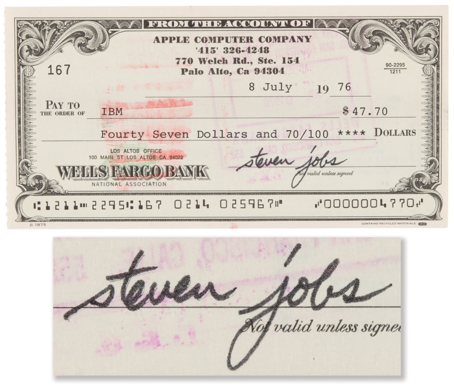 From checks to IBM signed by Steve Jobs to a series of vintage Apple computers, the auction lots span 49 years of Apple history. The items range from classic to weird and include an original Apple Watch, which is just a wristwatch with an Apple logo on the watch face, several sealed first-generation iPhones and iPods, autographed pictures, and a pair of quirky colorful Apple-shaped glasses that Steve Wozniak ordered from an optometrist in 1979.