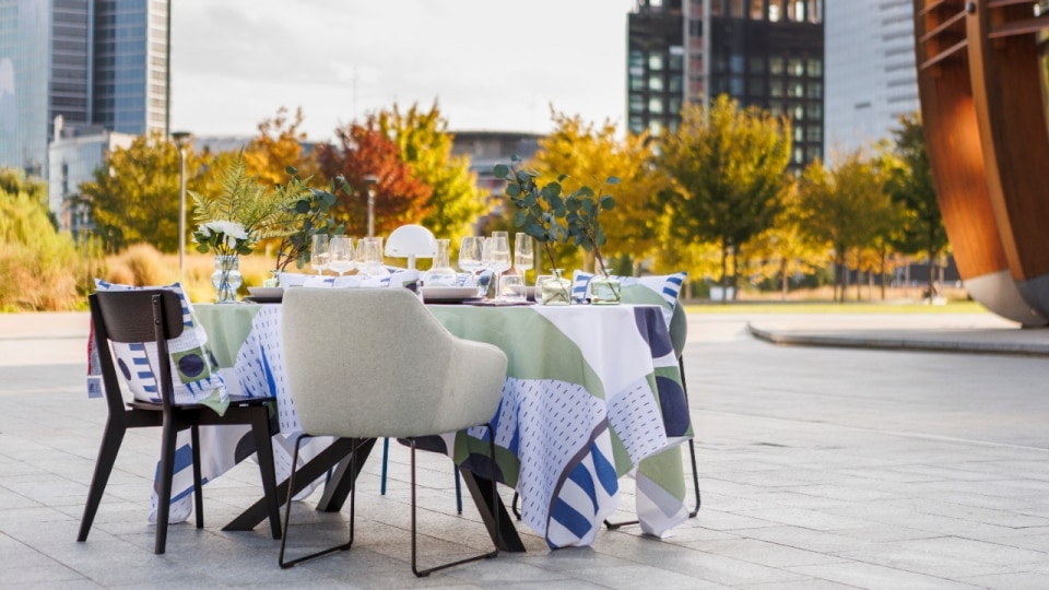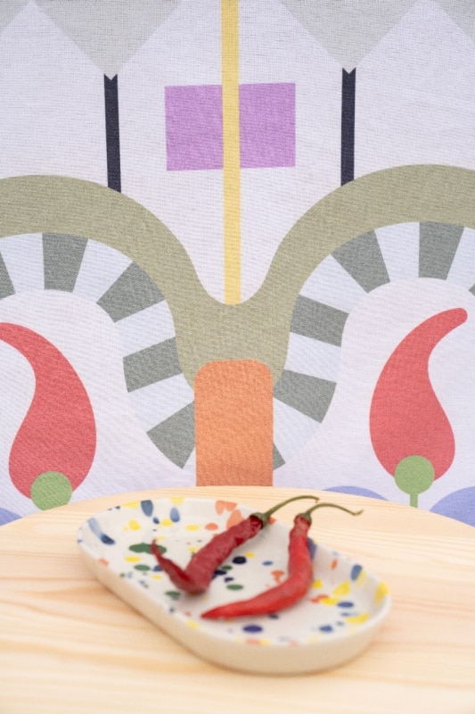 Beyond setting the table, she also designed it: tablecloths, placemats, and other elements of her own making, each tied to its city. Milan’s table features tiny echoes of the Duomo; Rome’s recalls the arches of the Colosseum (with plenty of cherry tomatoes); Naples’s, the chili pepper, symbol of the city’s culinary culture. It all came together in record time, at the expense of a holiday in Scotland—“but when Ikea calls…,” she smiles. What impressed her most was the brand’s responsiveness: “Even if you write on a Sunday evening, they reply immediately. That’s rare in the design world.”