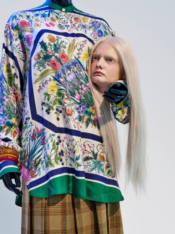In today’s hyperconnected world, where everything happens in real time, fashion continues to search for its physical space while drawing from its own history. The pandemic undoubtedly accelerated experimentation, leading to fully digital design weeks — from Milan to New York in 2021 — and to virtual, highly original fashion shows, such as the Balenciaga x The Simpsons collaboration (2022), featured in the exhibition’s fourth room.