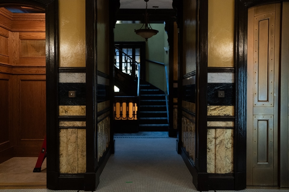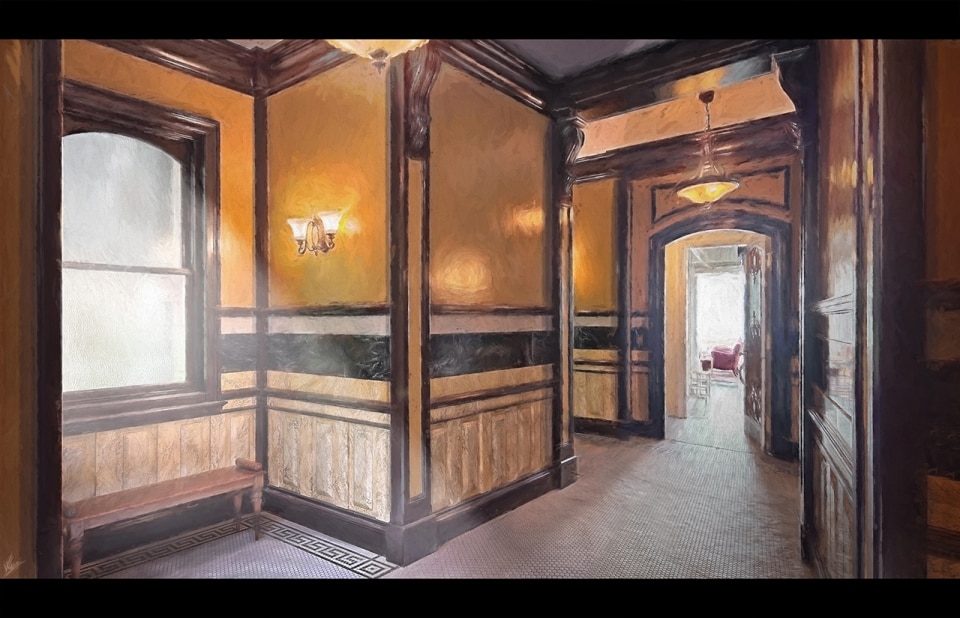 “To shape Alma and Frederick’s home so that it would mirror the complexity of their relationship with their environment, we needed strong horizontality and depth of field,” Baisi says. The team drew inspiration from typical East Coast and Upper West Side architecture, such as the Langham Building and the Dakota — the latter known as John Lennon’s final residence.
