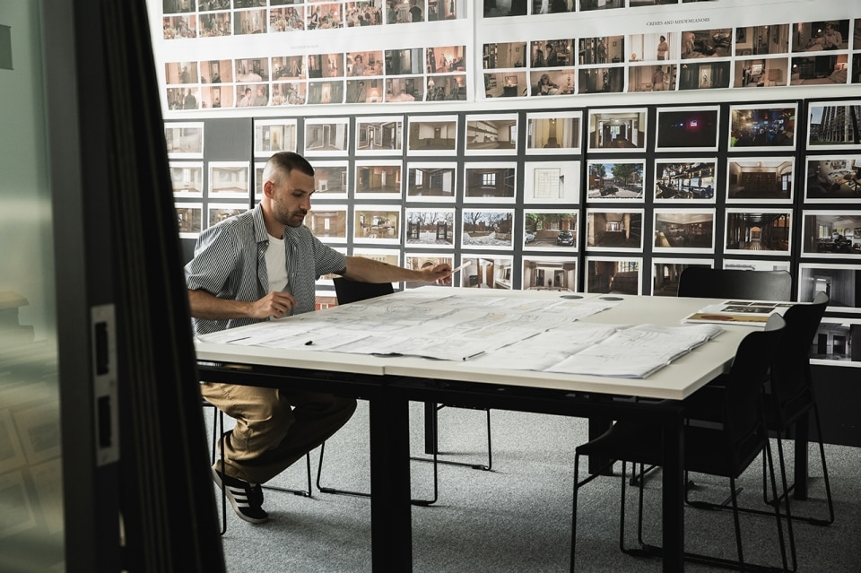 “In architecture, the task is to give form to the client’s desires,” Baisi explains. “In cinema, spaces are created in service of a story and its characters.” There is therefore “no pursuit of beauty for its own sake”: every spatial construction revolves around the characters and their psychology — “the spaces become true extensions of the characters.”