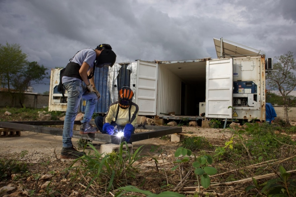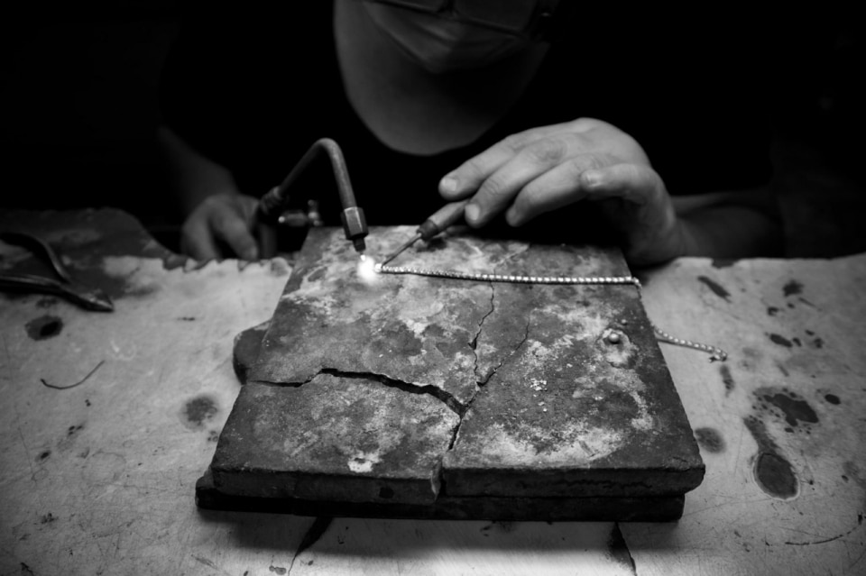 The entire production process of the brand's collections takes place inside eight decommissioned shipping containers, placed in a 10,600-square-meter property where fifty goldsmiths from Mayan villages near the city of Mérida work. The project addresses both industrial and social needs, reviving the region’s ancient goldsmithing tradition while promoting a form of responsible luxury that guarantees safe and skilled working conditions.