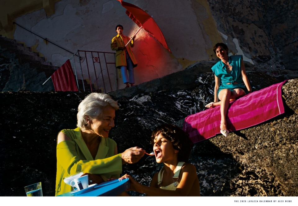 At 73, the Magnum photographer has created one of the brand’s most complex—and unexpected—calendars. The brief was simple in words but challenging in spirit: “to give a new sense of Italian-ness,” a project realized in collaboration with Armando Testa. “I've thought for many years that Italians seem to know how to live better than most of us“, Webb begins.