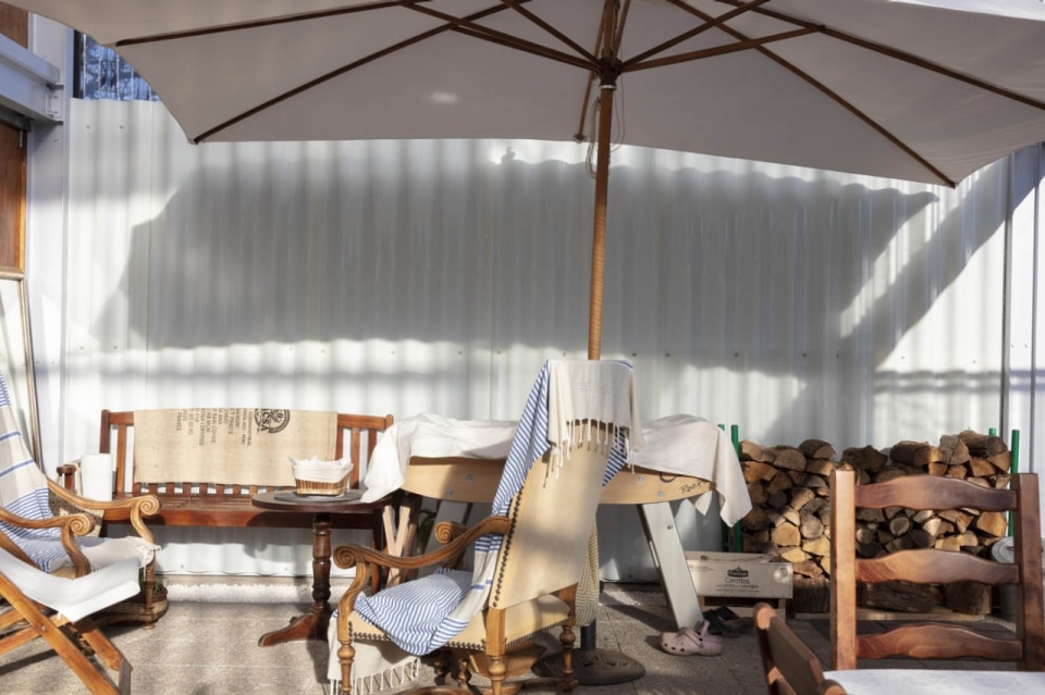 Enclosed by plywood walls, this inner volume measures 120 sqm, with a living space on the ground floor and two bedrooms upstairs, organized around a central service core with kitchen and bathrooms. But it is the hybrid space of the greenhouse that generates the true heart of the project, extending domestic space into an intermediate zone that is at once interior and garden – open in summer, warm in winter – where people and plants can coexist.