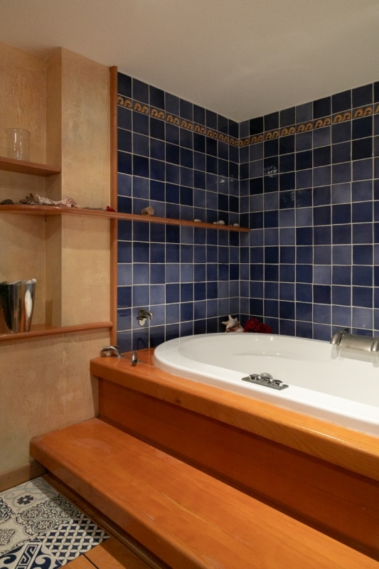Lecorbusierian signs can be traced in the details, for example in the fixtures and custom-made furniture set in the large walls now covered in Moroccan tadelakt.