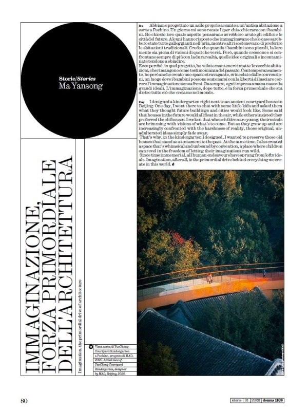 The issue closes ideally within the walls of a kindergarten in Beijing, where Yansong has created an extravagant space free from convention. It is a reminder to all of us: human endeavor always stems from a lofty ideal.