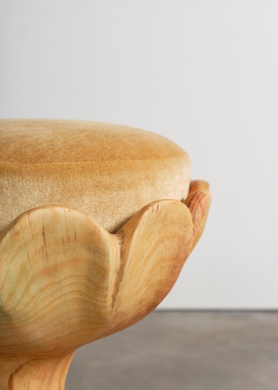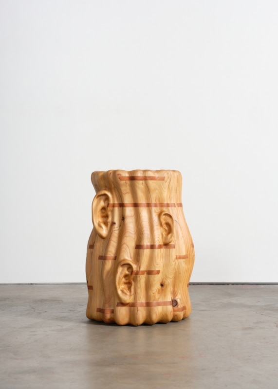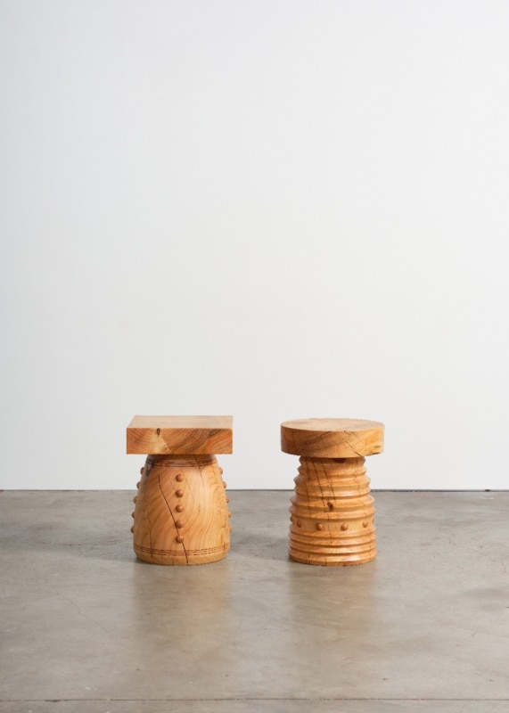 Thanks to a collaboration with Angel City Lumber — a sawmill specializing in the recovery and reuse of fallen trees across Los Angeles County — the logs, carefully catalogued and traced back to their origins, became material for both design and contemplation. Aleppo pines, cedars, evergreen oaks, Shamel ash: each participant was able to select trees from this wounded biome, which enters the exhibition space transformed into functional objects — seats, benches, bowls — in a gesture that celebrates the regenerative power of wood.