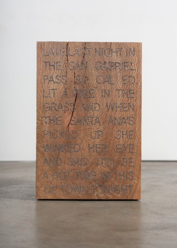 To commemorate these dramatic events, which left an indelible mark on the memory of the city and its community, the Los Angeles gallery Marta, with the support of sculptor Vince Skelly, inaugurated a group exhibition titled From the Upper Valley in the Foothills", where twenty-two artists and designers were invited to present handcrafted wooden objects made from trees sourced in the Altadena area, the foothill region most severely affected by the Eaton Fire.