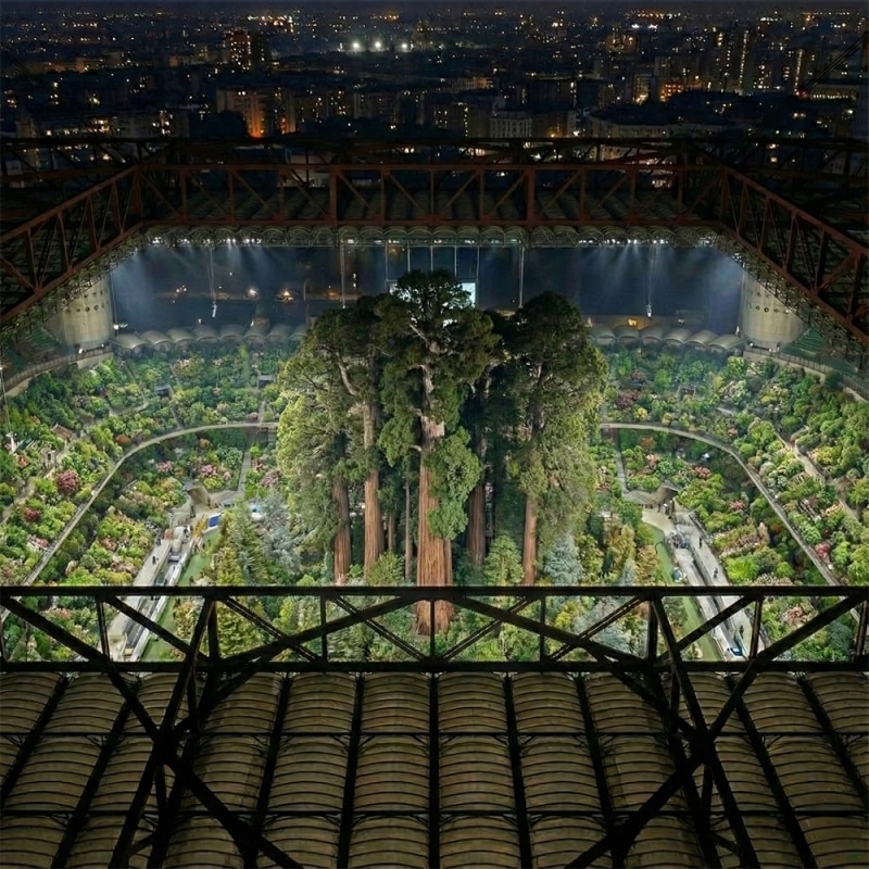 On his profile, inspired by the announcement of the new “Colosseo” metro station in Rome and by the theft of jewels from the Louvre, Mercuri wonders what the Paris museum would look like if it went underground, moving the Winged Victory of Samothrace between two metro canopies. Or he imagines San Siro turned into a garden after its closure. “What if all abandoned stadiums became parks?” he writes in the post caption. “This profile was born to rethink Milan’s major events — a city that now hosts events of every kind, every week,” he explains.
