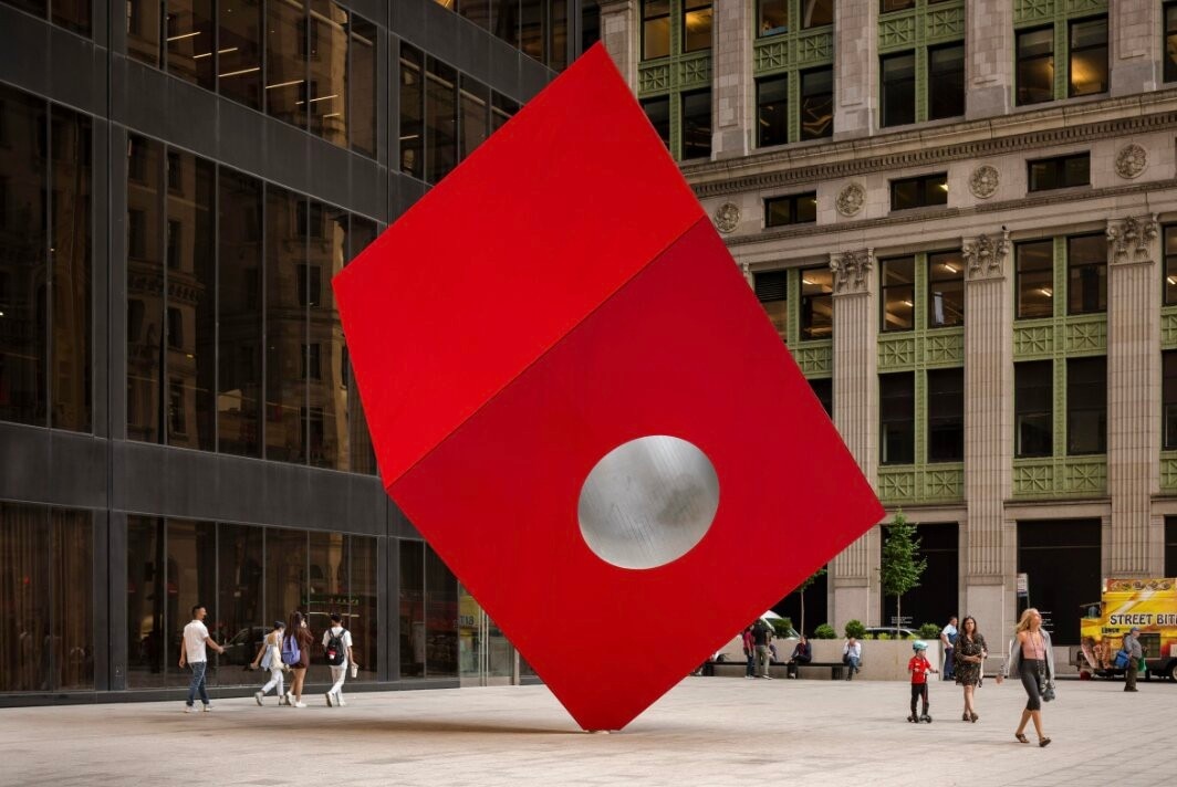 Opening image: Red Cube, Isamu Noguchi, 1968