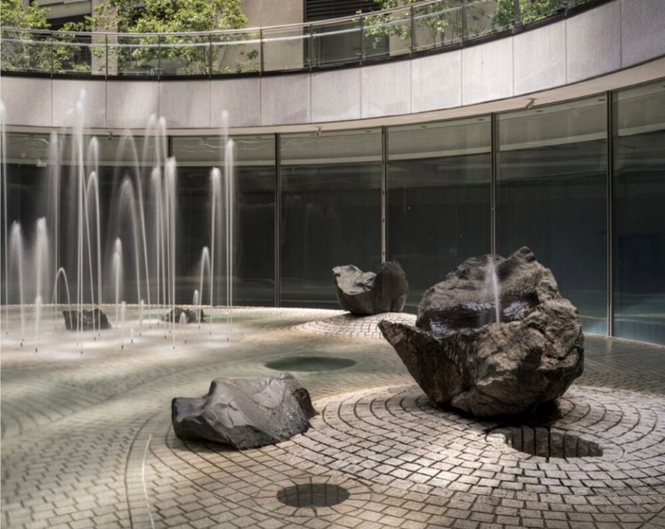 The exhibition begins with Noguchi’s early years in New York—his portrait busts, his MacDougal Alley studio, and his connections with the city’s avant-garde—and moves toward the major public commissions that helped define the urban landscape of Manhattan: Red Cube, the Sunken Garden at Chase Manhattan Bank Plaza, and News, the plaque for the Associated Press Building, his first public commission realized in the United States. Alongside these are photographs and materials documenting works that were completed but later altered or destroyed, such as his interiors for the Time & Life Building and the public work Shinto for the lobby of the Bank of Tokyo in downtown Manhattan.