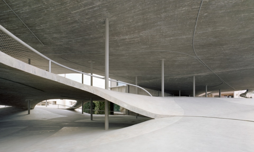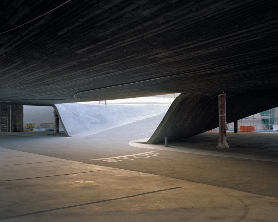 Forty-five thousand square meters of concrete, spread over four different lots in the old city. Kerez designed the parking lots around a principle that runs through all his research: the free section. The slabs curve and tilt, merging until they themselves become the access ramps between floors. Instead, a certain dynamism is revealed in what should be a space for stasis, translated into a structure conceived as a pathway rather than just a parking area.