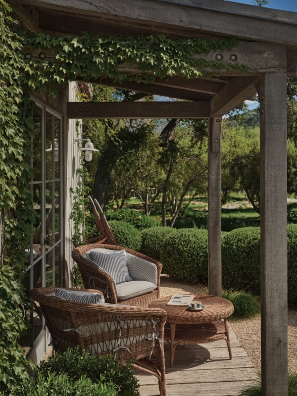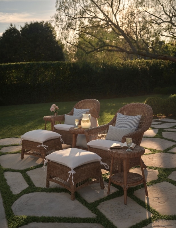 It was already one of the most successful self-reinventions of recent years, and yet it still does not seem to be over. Anderson now signs The Sentimentalist, a collection of more than forty interior design pieces developed with Olive Ateliers. Rattan chairs, teak tables, wicker baskets: objects made mostly from natural materials and inspired by her home in Ladysmith, British Columbia, which she bought from her grandparents and has restored over time.