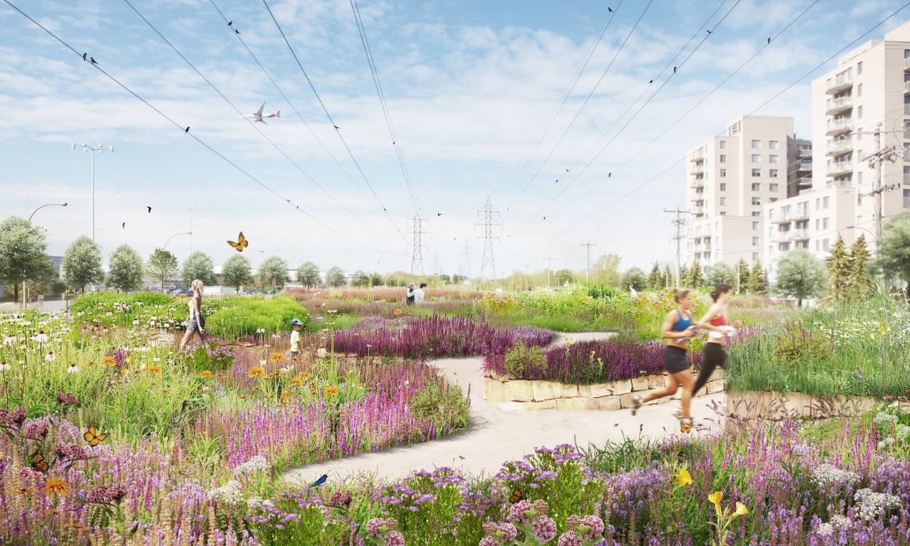 The project involved the creation of a system of green and blue infrastructure that acts as the backbone of a new ecosystem. In addition to the ecological function of strengthening biodiversity and re-establishing continuity between the area’s natural focal points (the wooded areas of Marcel-Laurin Park and Cavendish-Raymond-Lasnier-Beaulac-Poirier, the Bois-de-Liesse and Bois-de-Saraguay nature parks, and the Brook Cree stream), the project is envisaged over time as a ‘living laboratory’, as Kipar puts it, to test new and replicable synergies between nature and the built environment. Interpretive trails, rest areas and educational displays, flower-filled meadows for pollinating insects and small animals, and a topography characterised by undulating terrain define the layout of an area where the flows of the various existing biotopes are interwoven. The result is a unified ecological corridor, capable of restoring lost habitat to wildlife and vegetation whilst, at the same time, reactivating a more conscious and direct relationship with nature for local residents.