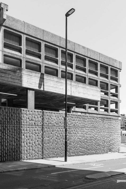 Among these, the Minories Car Park is one of the most interesting examples. Built at the end of the 1960s, just minutes from the Tower of London, it was born at a time when major British cities looked to the car as an inevitable future. The structure is apparently simple — a modular grid, open floor plans — but, observed closely, it reveals an almost obsessive precision in the design of the elements, in the rounded corners, and in the relationship between solids and voids.