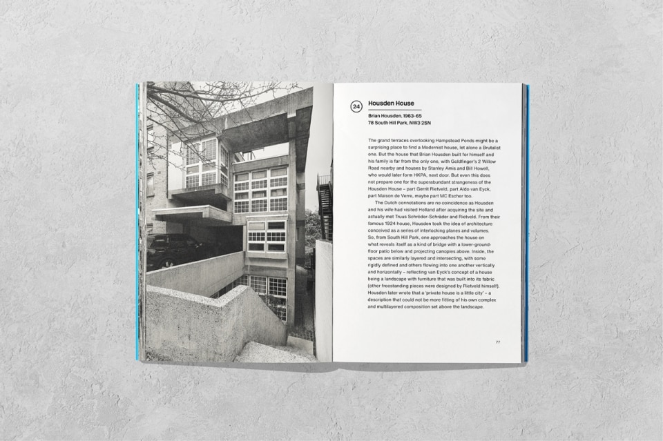 Inside the book there's space for more unexpected objects, deviations from the common vision of Brutalism. Housden House, in North London, is one of these.