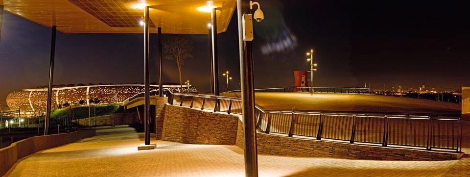 With the architectural mechanism that symbolises an African calabash, Soweto, the city of blacks, offers the global village an irrational presence. Agile and pragmatic, but also inspired, the designers favoured this interpretation and enclosed the football pitch with a texture whose colours are reminiscent of the earth.