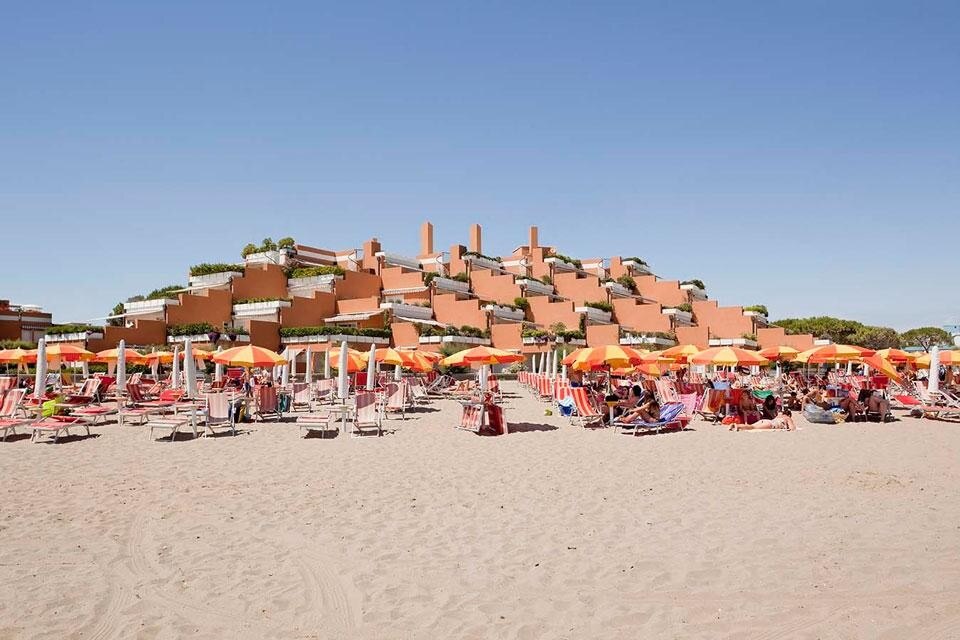 Jesolo is a seasonal resort, cosmopolitan and large, serving the entire Veneto region, a region that in the past 50 years has gone almost unconsciously from poor and agricultural to industrial and prosperous area. Whoever comes here to spend a few months or weeks of vacation, rather than isolation or direct contact with nature will be pleasantly sucked away by organized distraction and pleasure. Once home, those who have been here cannot really say to have been at the seaside, but will have to say that they have been to a seaside town. It is the same status of other small seaside cities, such as Rimini, Sanremo, Taormina, or Viareggio. One of the ways in which Jesolo has decided to make the leap from village to city has been through the construction of tall buildings, designed by the hand of well-known architects. They are small residential high-rises, easily visible from the coast and the mainland, comparable to or bell towers or lighthouses, scenic and sought after in terms of real estate.