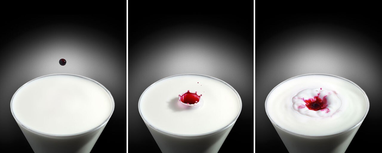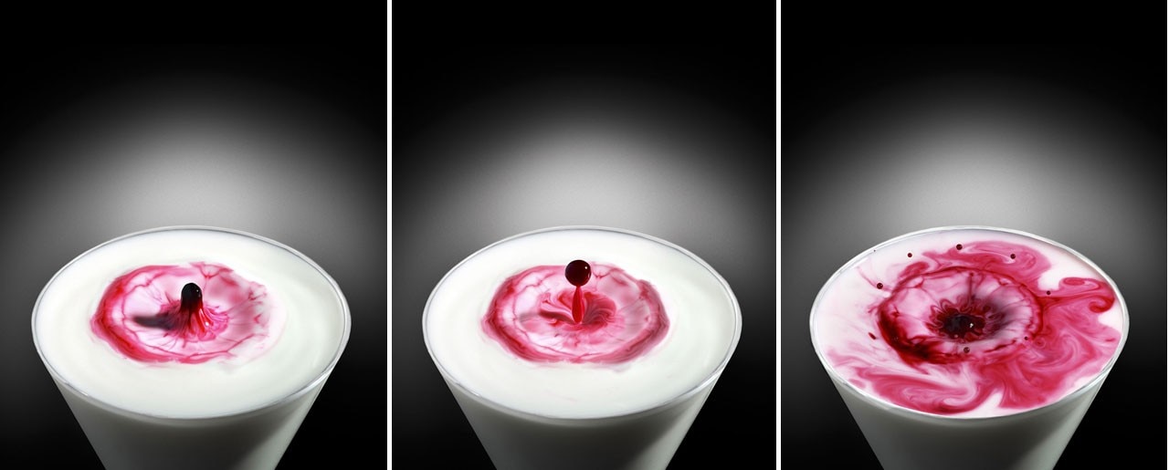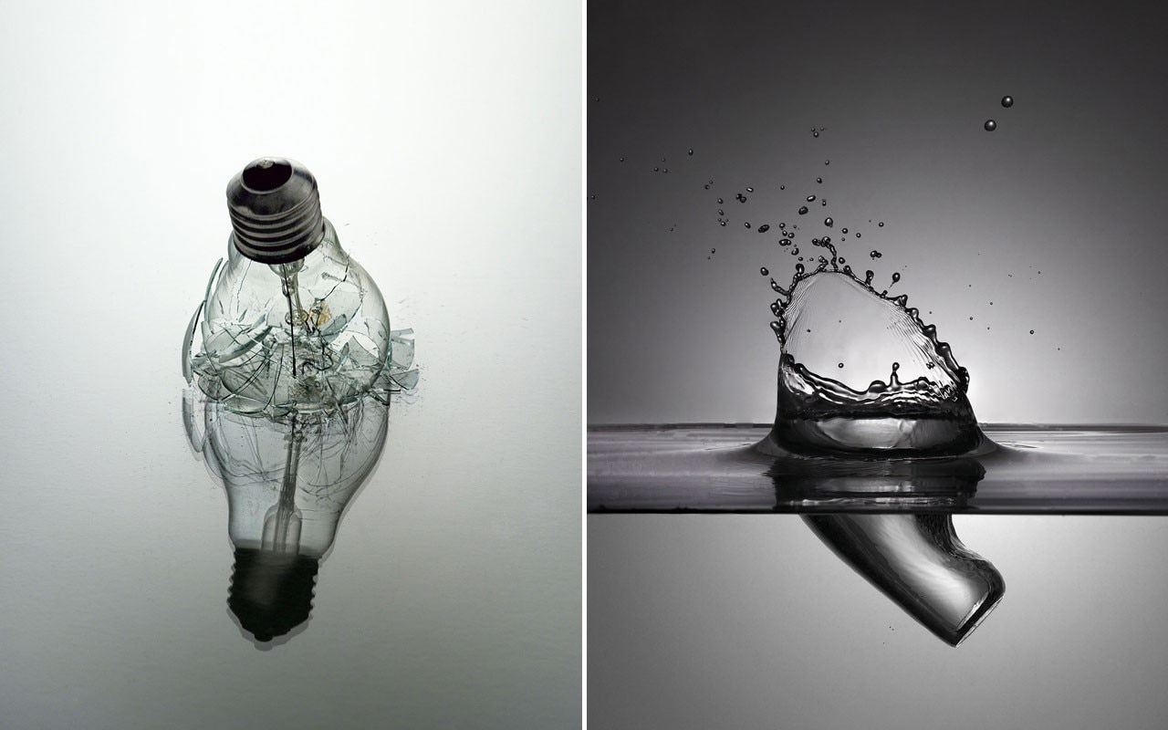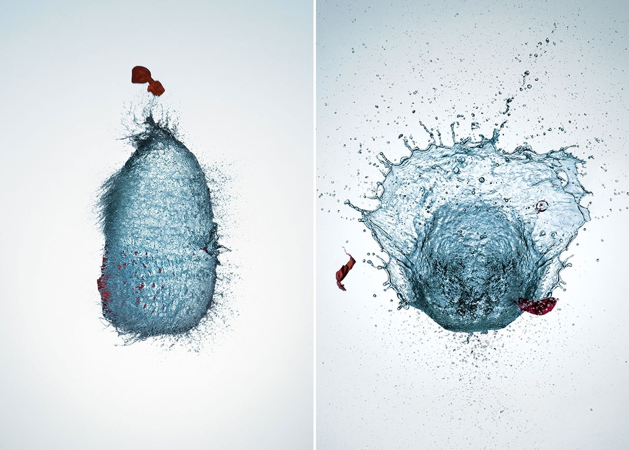 LZ: Initially, I chose the water balloons because I did not yet have the technology to set off the flashes at the exact moment. Besides, they were obvious, inexpensive and spectacular. Then, I started conducting experiments with bulbs, milk and liquids with different consistencies. Those were mainly unrefined experiments, photographically not very appealing but scientifically interesting – what happens when a drop of ink falls into milk? I tried, made a mess and split stuff. Then, I decided to do something more demanding, conveying the scientific effect but also making space for the aesthetic factor.