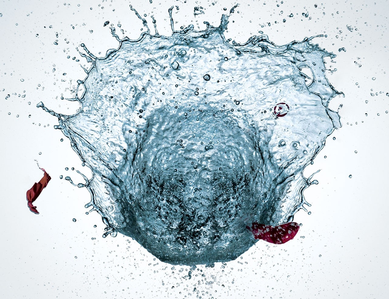 Luigi Ziliani: Shooting at a ten-thousandth of a second is all down to the right equipment. Broncolor flashes can make the flash last at speed and its maximum force for a ten-thousandth of a second. It is fairly advanced technology as a flash usually lasts a five-hundredth of a second but that would be too slow as a drop traces a trajectory in a five hundredth of a second. A ten-thousandth manages to freeze the phenomenon. The other difficulty is doing it at exactly the right moment.