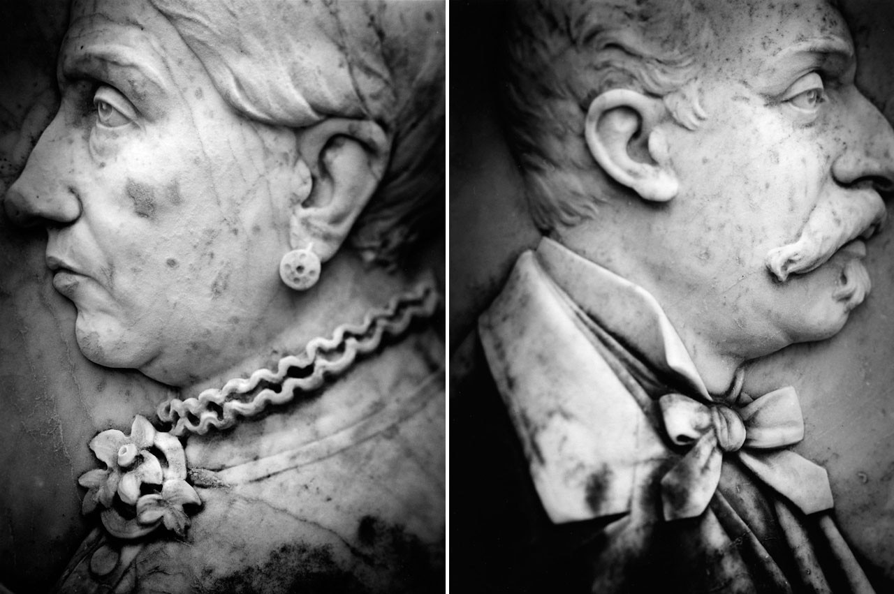 The quantity of bronze and rusty iron decorations sprawled across the untended grass surface is distressing. Beneath my feet, I feel a constant presence of decorative and architectural features from monuments. Nature has regained the upper hand here.