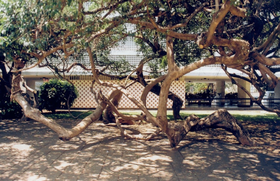 There are no gates, fences, or inaccessible areas, it is possible to safely walk to every corner, going throughout the length of the district without any interruption. The buildings are all suspended by elegant pilotis and without a front entrance: the access is from the bottom, with a lift, much like a spaceship. The large lawns and vegetation fields are at one with the living spaces. It is all integrated as in a landscape of piles or tree houses, interpreting the best aspects of a garden-city.