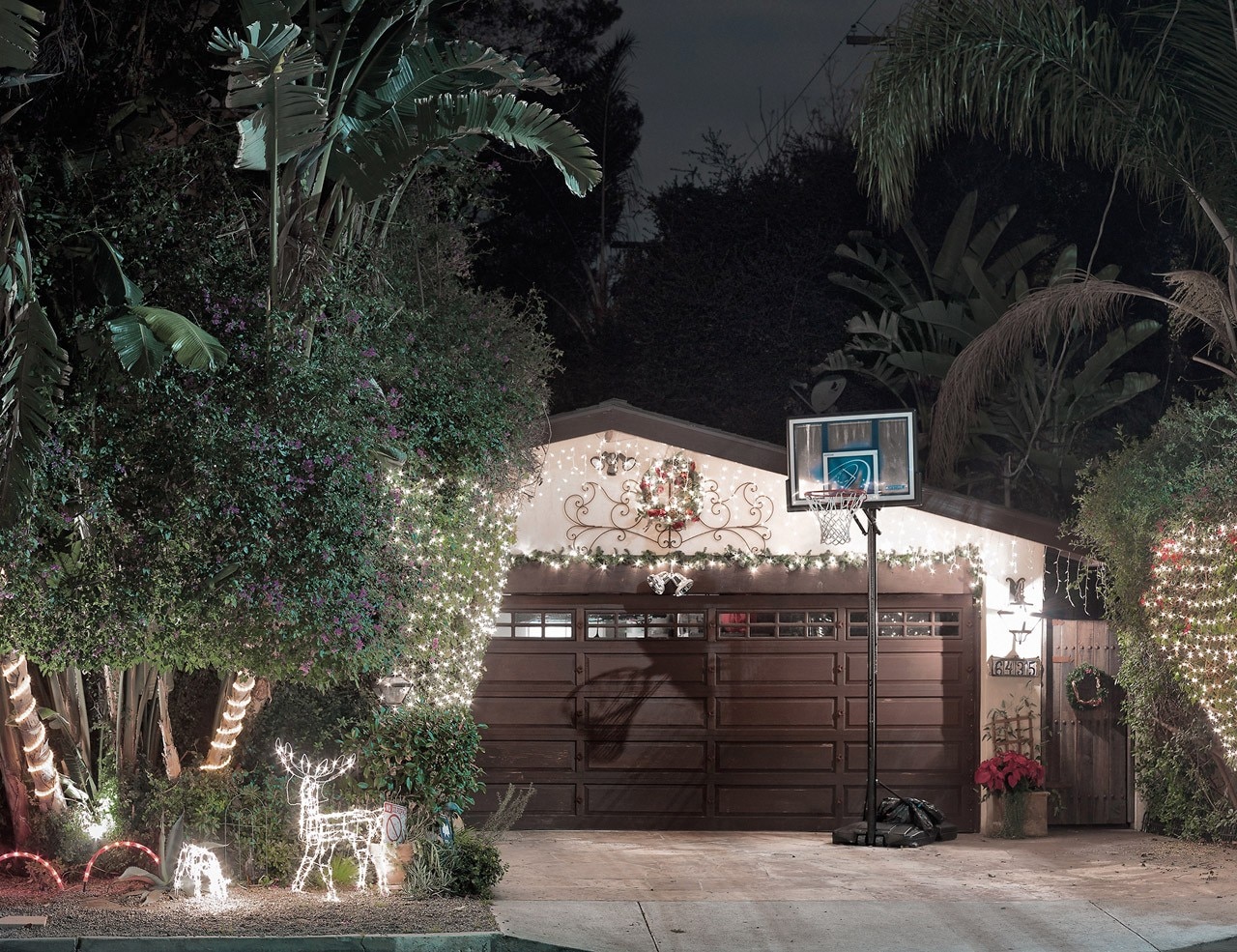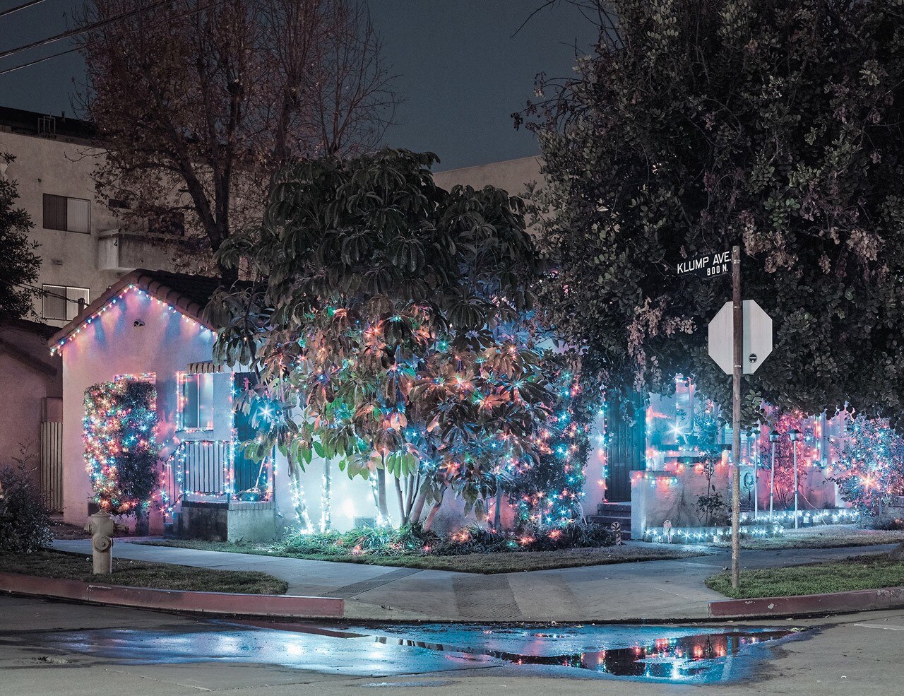 The bright lights and surrounding shadows create an ominous feeling. This is where the mind starts to wander, the questions arise. Which is really a safer place to be? Where is everyone, inside? Is there someone outside observing? Why does the darkness feel so frightening? Imagination mixes up with reality and stories from the news. Interpretations start to build up in the viewers’ mind.