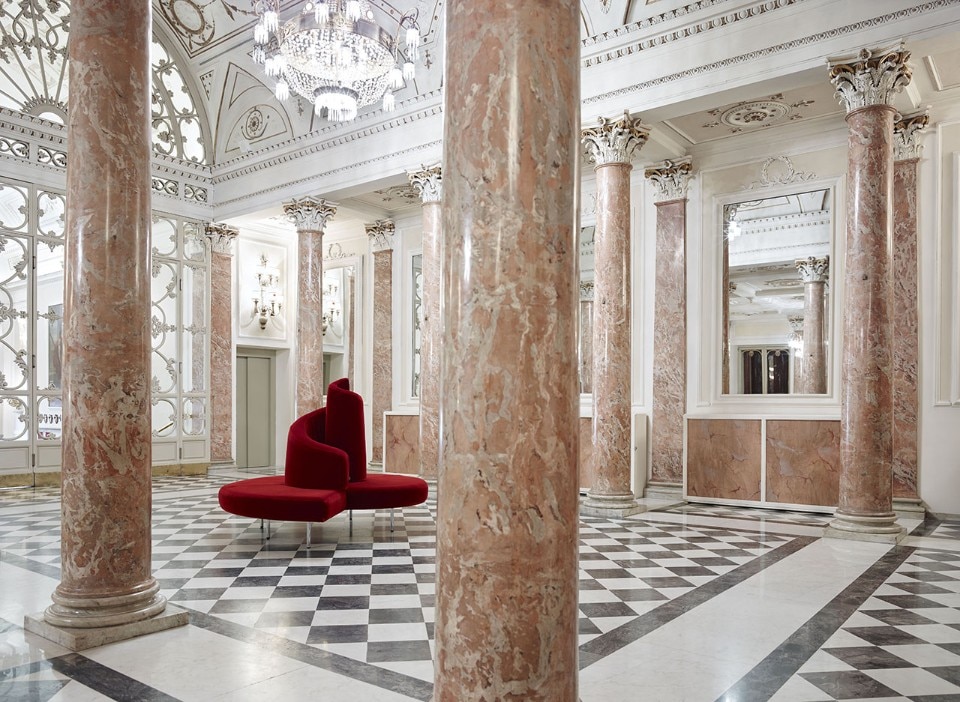 Teatro della Pergola, Florence. It is the most ancient Italian theatre, built in 1656 on di Ferdinando Tacca's design, thanks to the patronage of del Cardinal Gian Carlo de' Medici. Open to the public from 1718, it hosted the operas by Mozart, Verdi, Donizetti e Mascagni. The Tatlin sofa by Mario Cananzi and Roberto Semprini awaits the audience in the foyer. Photo Pietro Savorelli.