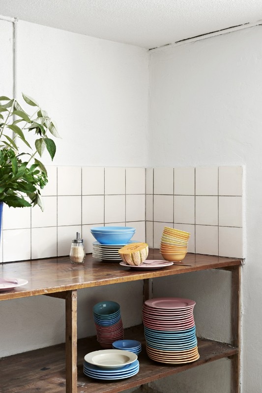The design of the new collection is the result of the collaboration between the co-founder Mette Hay and the restaurateur Frederik Bille Brahe; the collections consists of a large selection of everyday kitchen pieces includes pots, pans, graters, cutting boards and peelers, as well as plates, cups, glasses, cutlery and even sponges. Materials and textures combined with the archetypal simplicity that characterizes the design of the firm give shape to this new collection, punctuated by vivid and pastel colours.