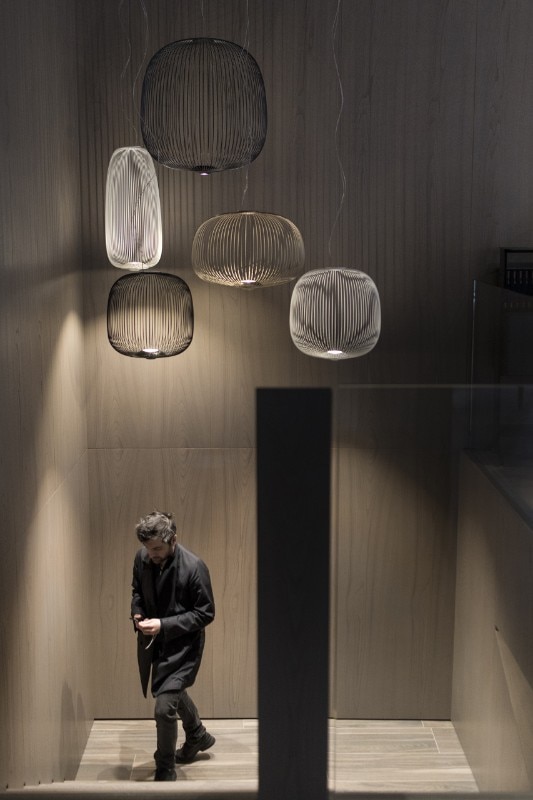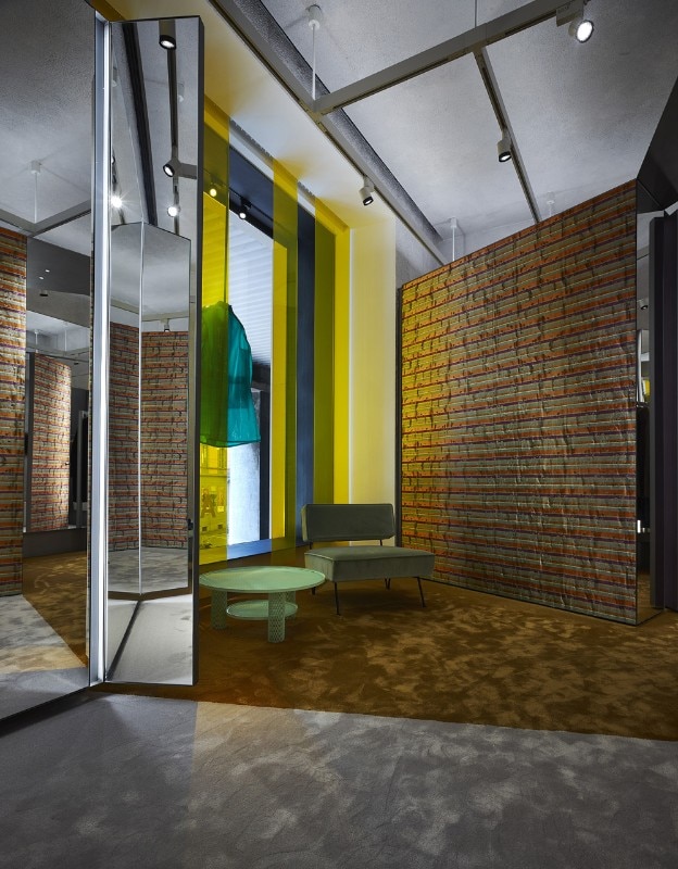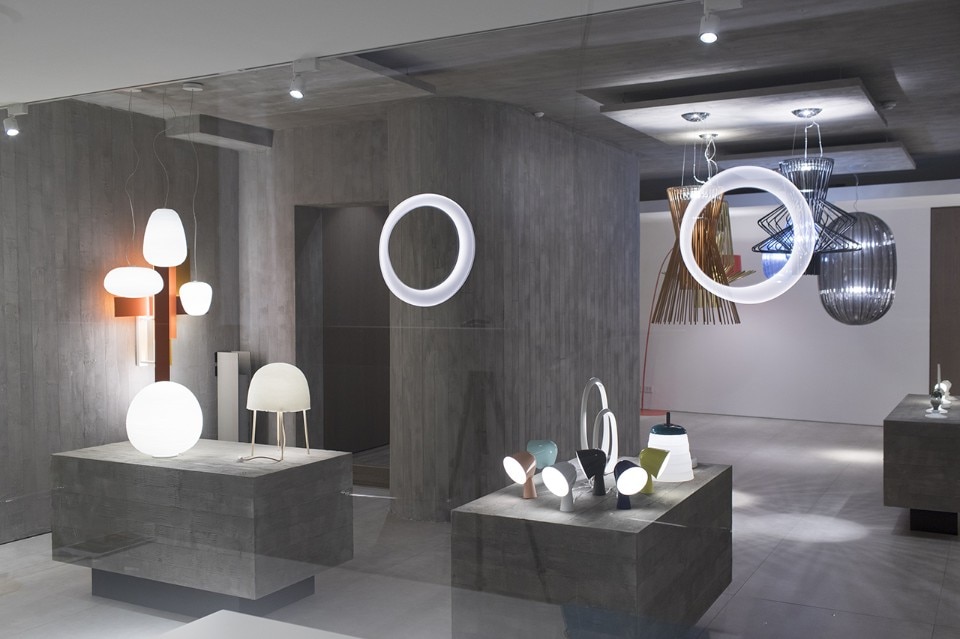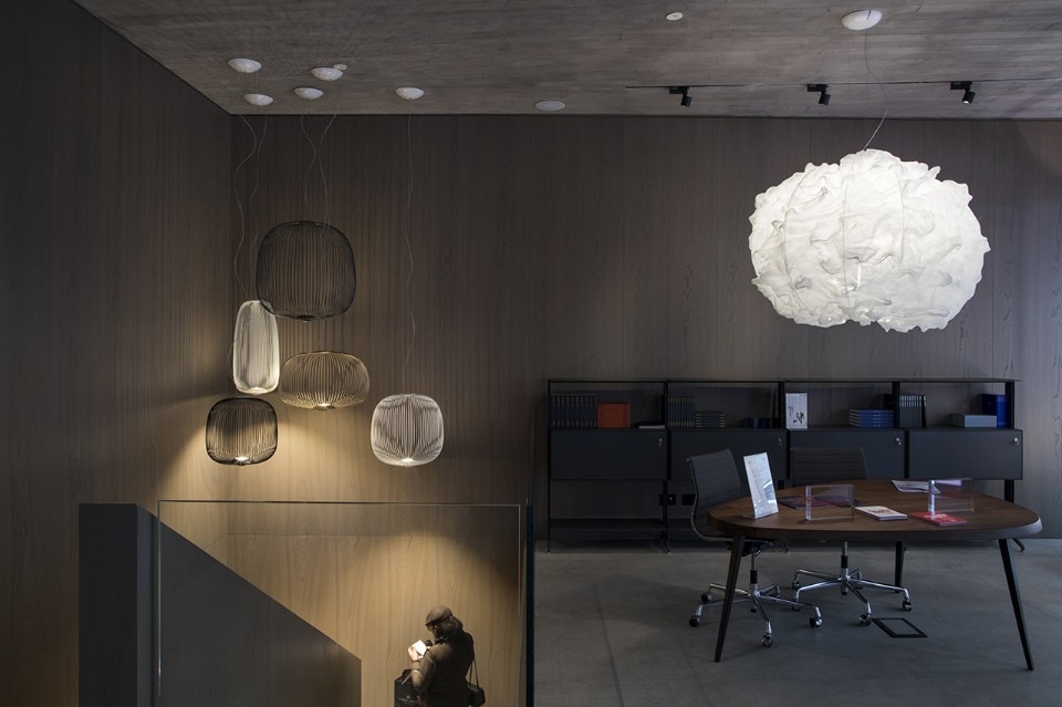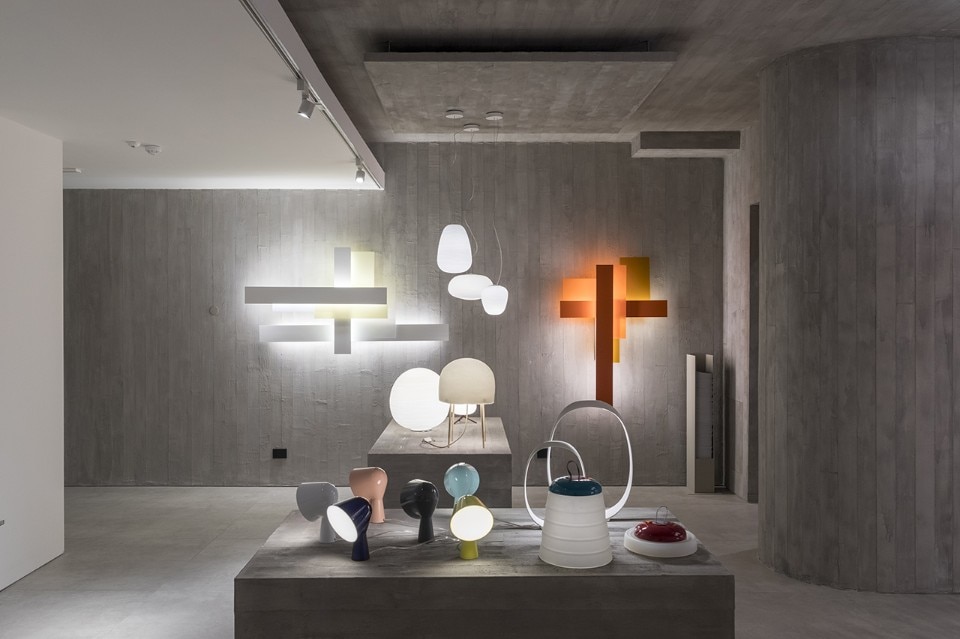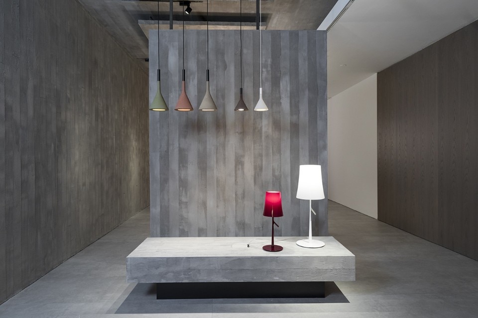 The use of materials becomes an instrument of storytelling and the focus of the project for two new showrooms in Milan: one designed by Ferruccio Laviani for Foscarini and the other created by Dordoni Architetti for the clothing brand Aspesi.