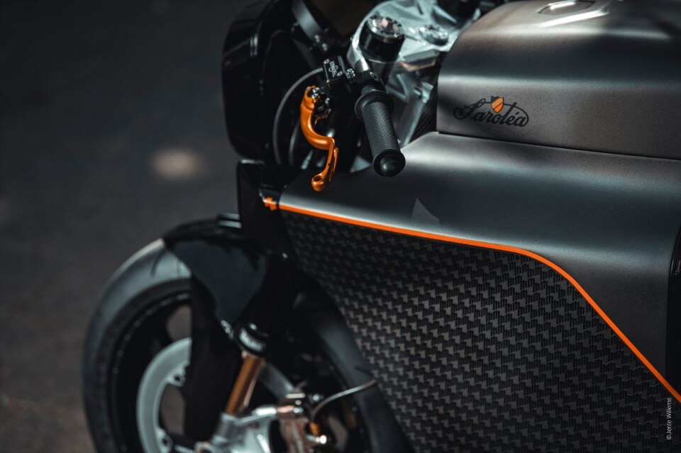 Belgian bike manufacturer Saroléa has partnered with Antwerp-based Mighty Machines for the launch of its special edition N60 electric motorbike. The N60 MM.01 (that’s the full name of the bike) comes with a bespoke bike suit by Cafe Costume with a slim cut and custom road protections, a Heroine helmet designed by Italian brand Hedon and a stylish Damascus Knife handmade by Studio Blade. Everything has a black carbon-fiber flair to perfectly match the bike design. The N60 MM.01 is still the centerpiece of the bundle, though: it’s made with a carbon fiber monocoque frame and it’s powered by a DC 3-Phase brushless electric motor. The 22kWh battery has a 300km range and it can be charged to 80% capacity in 20 minutes. Riding sustainably and in style with this is not for everyone: the bundle will be produced in 20 units and will cost 70.000€.