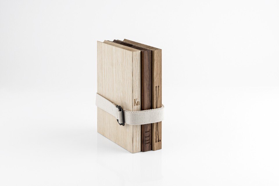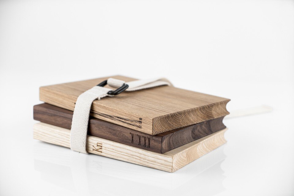 The reflections of Italian intellectual Carlo Belli included in KN (1935), which is considered the Italian manifesto of abstractionism, have been reworked for the KN Book collection. Just as in abstract art there is an illusory perception of reality, so the new KN Books take on the appearance of books to hide the function of cutting boards. These can be sold separately or as a set of three chopping boards joined together by a fabric strap, to be displayed in the kitchen as a work of art that can then be used for real.