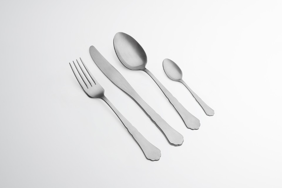 The 18th century collection brings back to the table the excesses of the Baroque in a contemporary key. Proposed with stylised motifs on the cutlery we can find volutes, frills and decorative elements that recall the shapes of shells and leaves. The series of cutlery with a satin finish includes fork, spoon, table knife and fruit to which fork and serving spoon are added.