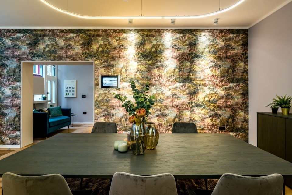 The system offers wireless lighting with colour-change and a digital assistant, together with other functions like heating- and lighting-controls. Switches in different finishes and colours are exposed inside the store, such as Toggle switch LS 1912, a tribute to the brand’s foundation year that evokes nostalgia with its sound.