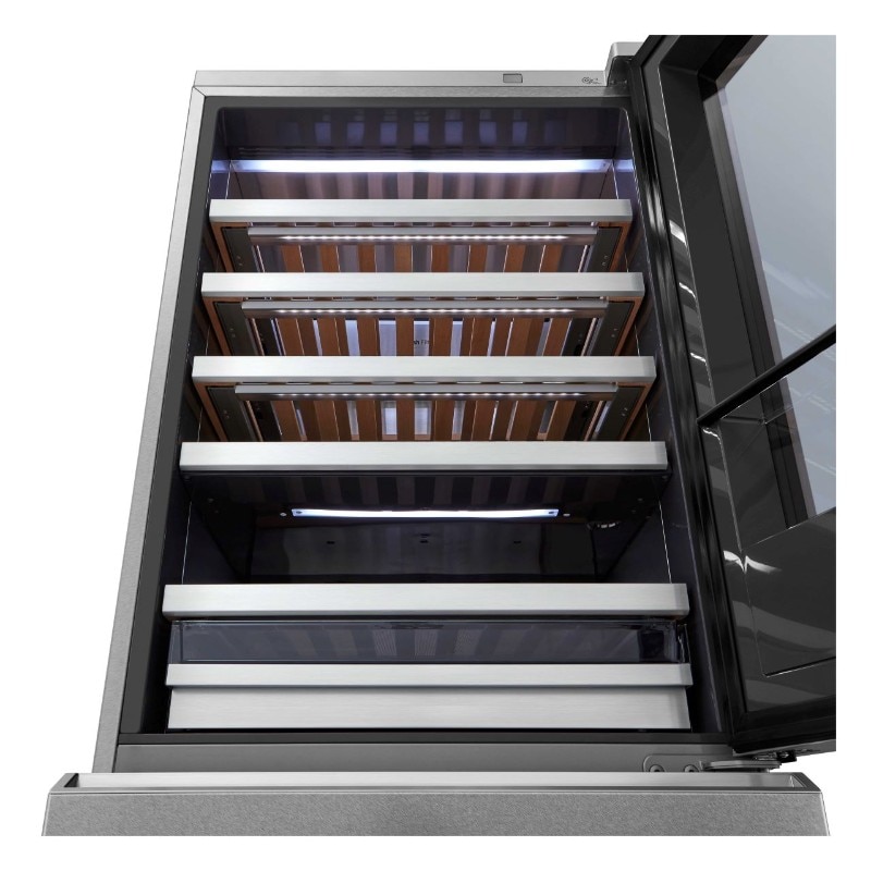 Optimal Humidity Control optimizes humidity levels, while Multi Temperature Control allows different types of wine to be stored at the same time, each at the right temperature. The cell, which can contain up to 65 bottles, is also provided with a door limiting light exposure, equipped with InstaView technology to allow users to look inside without affecting the internal environment.