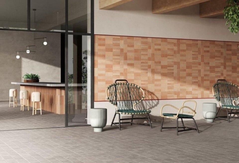 The CobbleMix System tiles take their inspiration from the paving of urban streets, aiming for aesthetic continuity between indoor and outdoor. The series offers warm and cool tones in a wide range of formats, allowing designers to meet different needs.