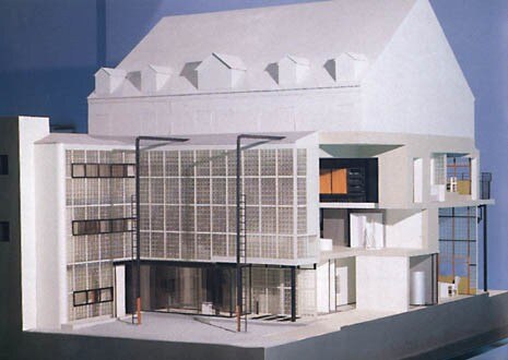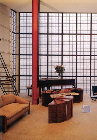 As Guillaume Apollinaire wrote during the same period, the latter is the dimension of infinity and the spiritual. Inside the house’s boundary of glass bricks the fourth dimension is felt through the contrast between dynamics and statics. In architecture, statics are the structural frames, representing the eternal and immobile. The dynamism expressed by the horizontal and vertical circulation system, the fixed and movable partitions, the sliding screens and the rotating screens that continuously transform the space is totally independent. Chareau’s house is neither still nor photogenic: it is cinemagenic. You have to move through the spaces to appreciate it, for the entire interior is animated. When you enter you get involved, comprehend and are driven to live there; you want to go through the whole building. The house itself sums up a world, a modern French artistic context derived from cubism. Chareau was one of the founders of CIAM; he joined the Union of Modern Artists and was one of the people behind L’Architecture d’Aujourd’hui. Rather than being a cubist manifesto, this creation followed a cubist procedure.