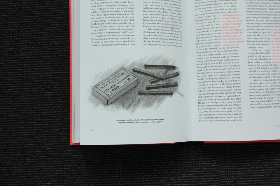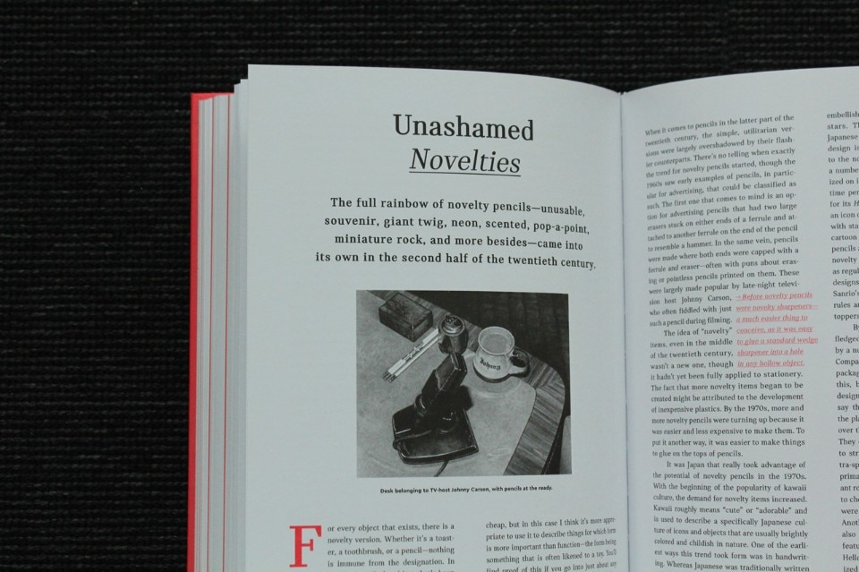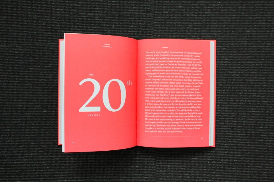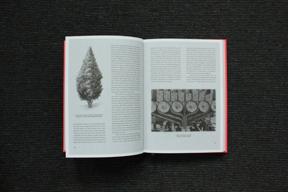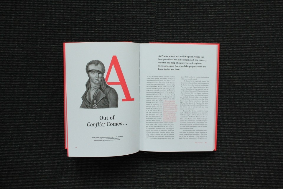 The general enthusiastic recovery of forgotten implements and analogical techniques (freehand drawing, stamps, gravers, printing presses, silk-screen printing or compositions with moveable type) is perhaps a slightly snobbish effect of the rejection of standardised computer-based work. But within this impassioned comeback, the pencil’s revival has a place of its own. Its history, Weaver tells us, is unique and full of surprises. It brings together age-old traditions, the discovery of an exquisite graphite deposit in Great Britain in the 16th century, materials such as clay and wood (red maple and poplar), and production techniques that have transitioned over time from handcrafts to industry and design. But there are other details of no lesser importance: the hardness of the leads (from F to H to B, remember?), pencil-sharpeners of all shapes and sizes, and of course rubbers (which replaced breadcrumbs for erasing mistakes).