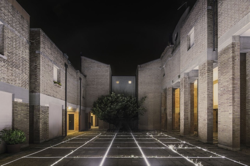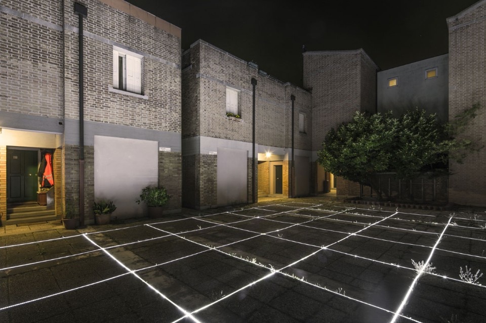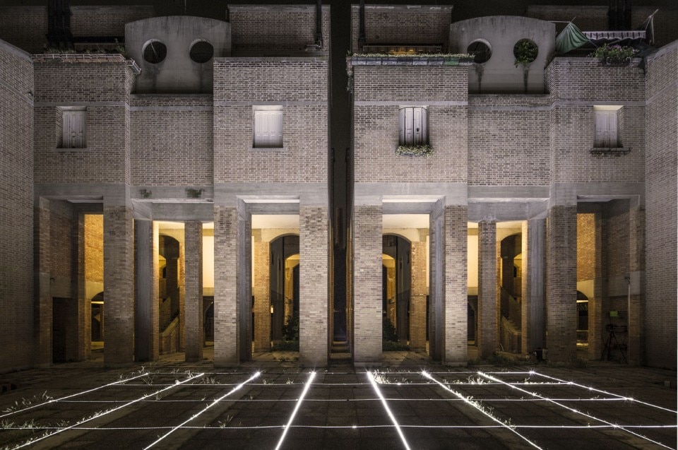 Boano Prišmontas brought a magical and evocative atmosphere in a local working-class campiello (square) of Venice, within the Unfolding Pavilion. Gino Valle relied on a spatial grid of 165x165cm to regulate all spatial relations of Giudecca’s Social Housing complex. The installation aims to exhibit the process of abstraction and rational control over the space that happens in the architect’s mind.