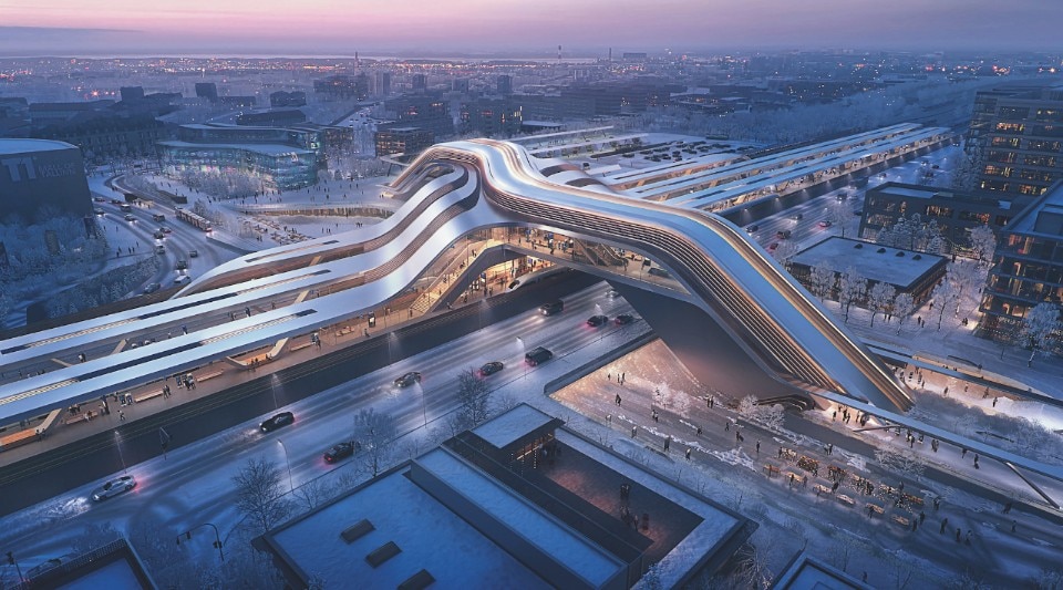 Opening image: the project (by Zaha Hadid Architects) for Ülemiste station in Tallin, the capital of Estonia, terminal of Rail Baltica