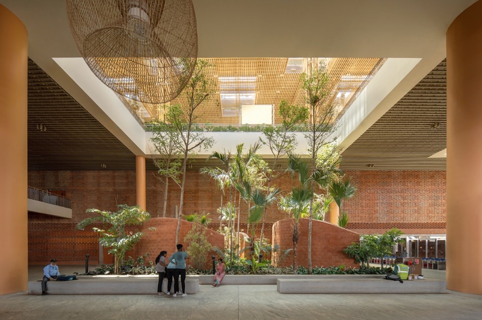 The notion of a terminal in a garden was soon paired with another, seemingly in opposition. Bengaluru has more recently established itself as a major tech center, with numerous Indian and multi-national companies employing thousands, many graduates of the prestigious Indian Institute of Technology in Bengaluru. Nature and technology – were in the client’s brief to be the two sides of a proposed Indian and Karnatakan identity.