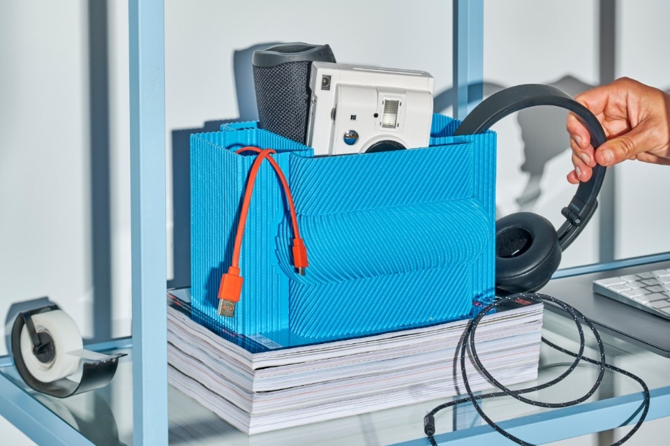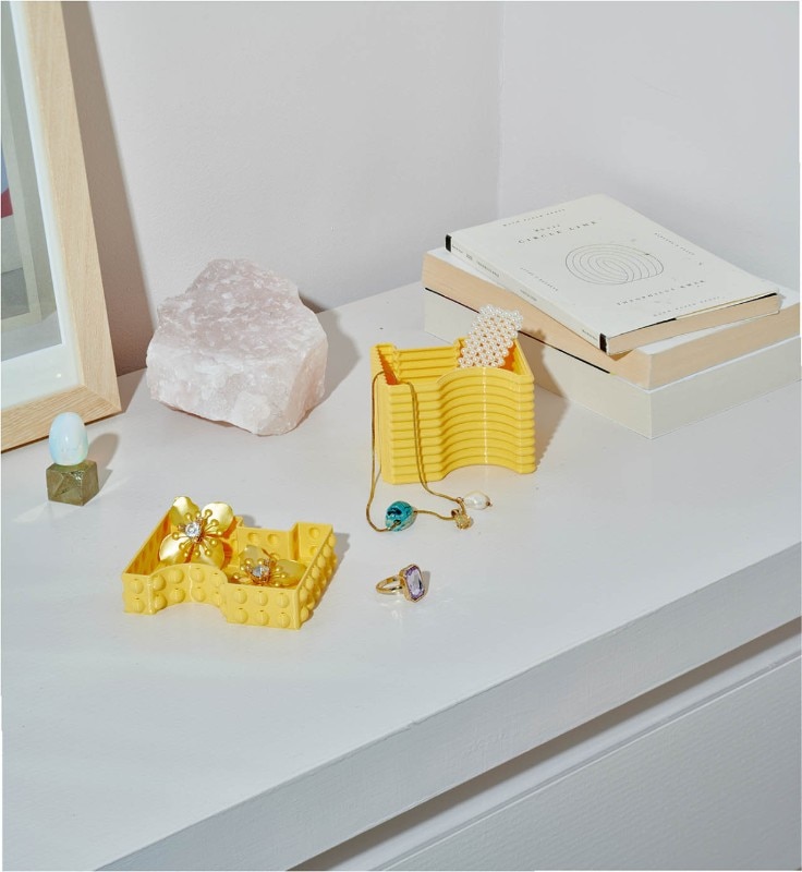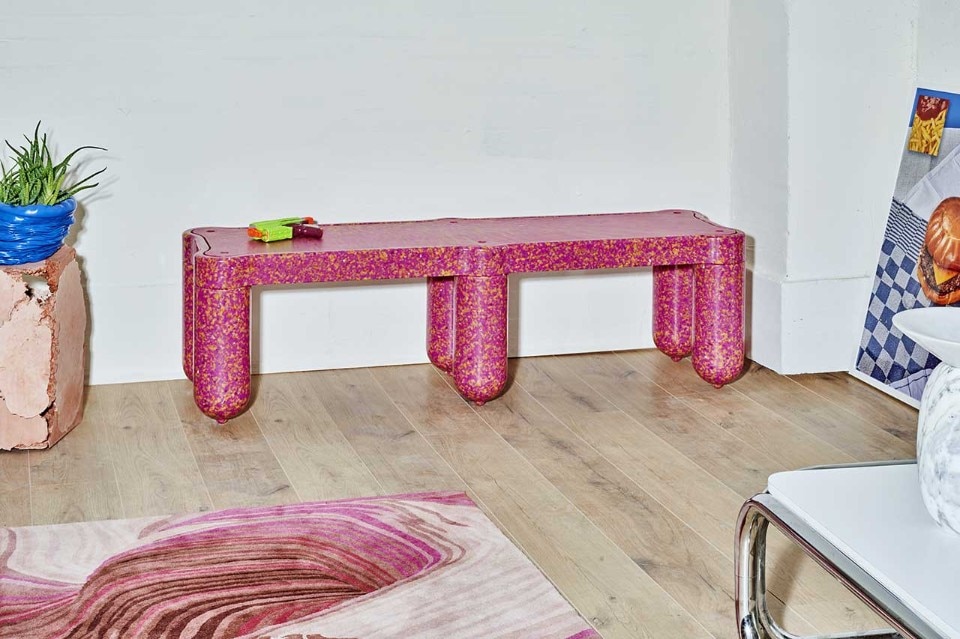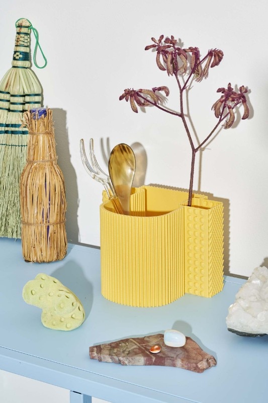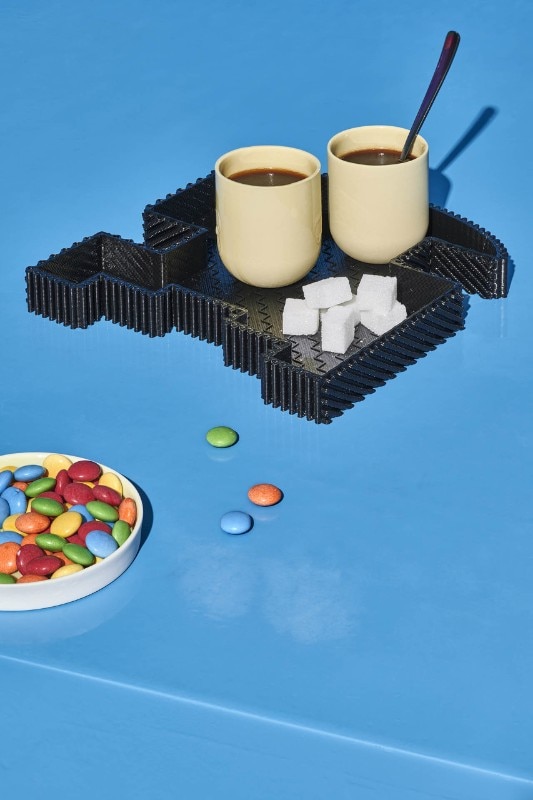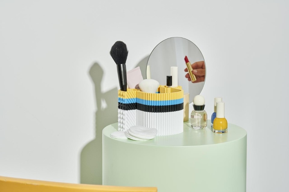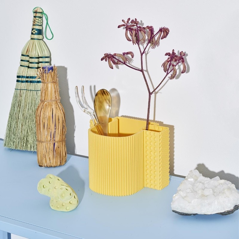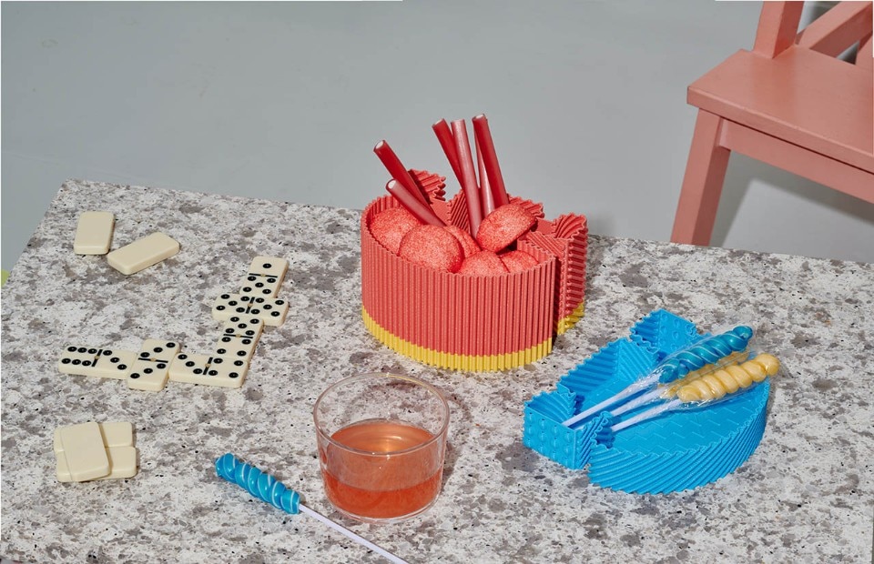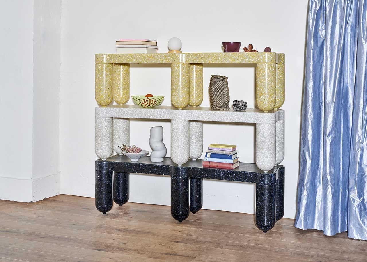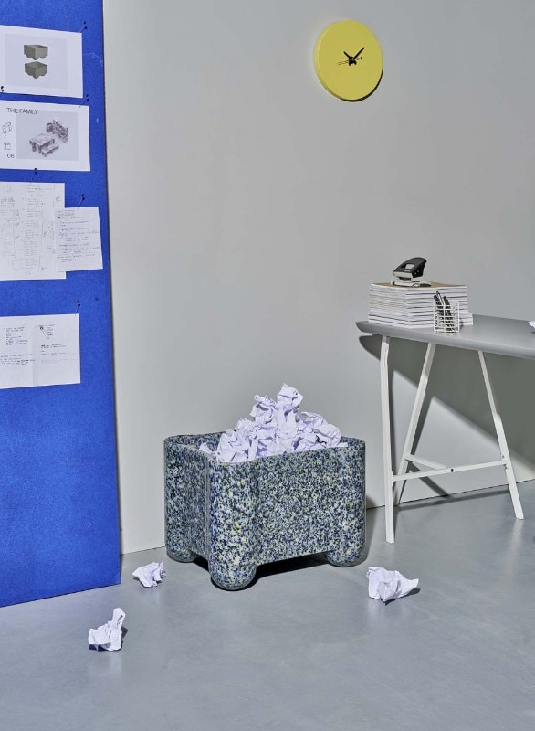 The two launch collections, both made of recycled plastic, experiment with different and now consolidated technologies to create informal and aesthetically straightforward objects with respect to their origin. On the furniture front, the designers duo Odd Matter duo confronts rotational moulding with Afterlife, a stackable bench-bookcase and a container with an unmistakable terrazzo texture. On the accessories side, the designer Paula Cademartori gives life to a series of small 3D printed objects with additive technique that transform the texture into a joyful solicitation combined with color.