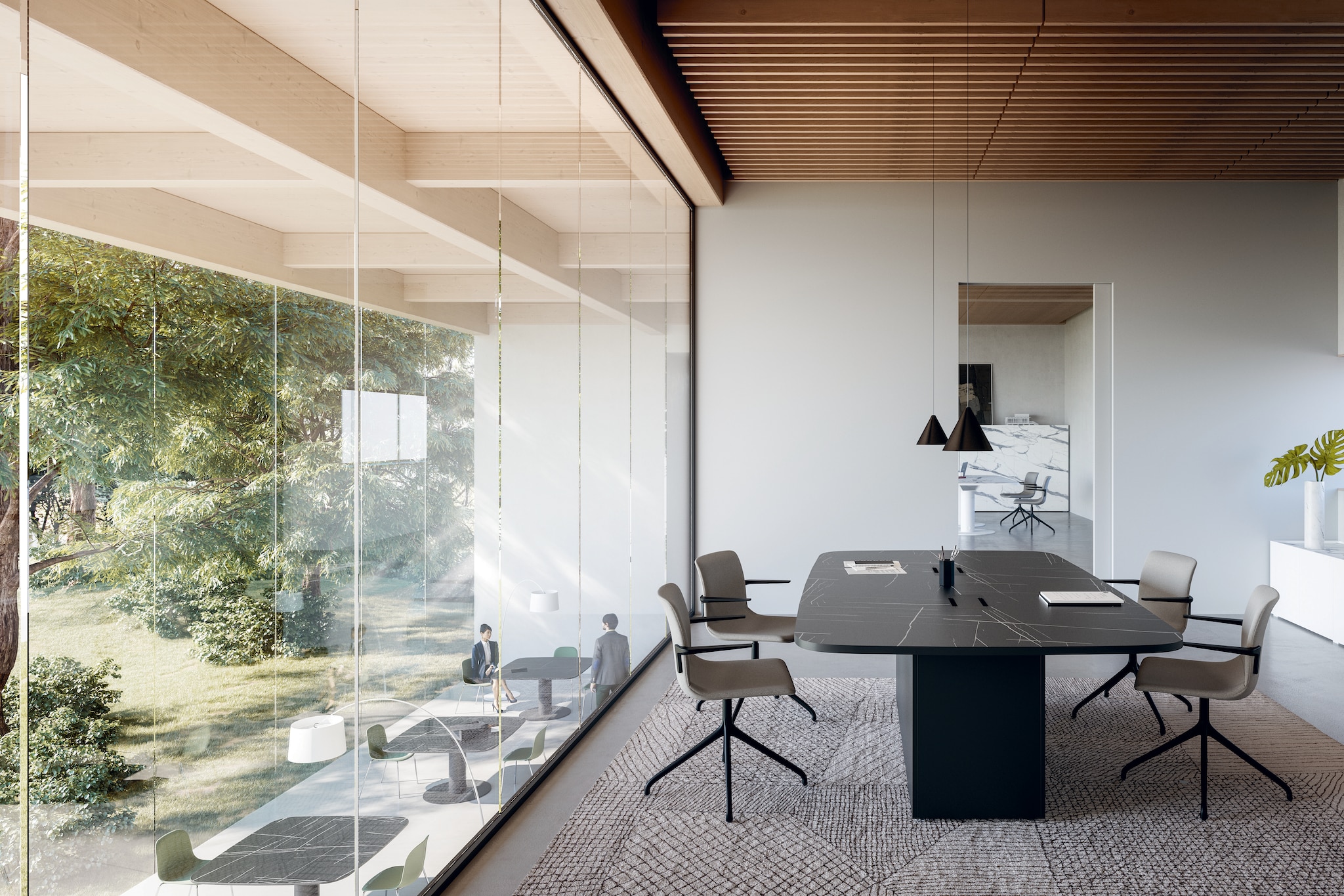 What happened was that during the development phase we asked ourselves a question: does it really make sense to create an executive table? Today, more than ever, managers are on the move, between video calls and presentations made from airport waiting rooms. When a manager is in the office, they spend their time meeting with colleagues, trying to stimulate human relationships. Meet Up was the result of these observations.