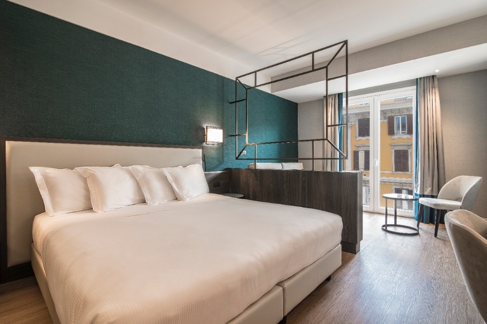 The building is constantly exposed to noise pollution because of its strategic location and its position in a very busy spot in the Roman capital. Therefore, this was one of the main challenges Studio Ceccaroli – author of the project along with Studio Curti – faced. “Our architectural design studio has specialized in hotel industry for 25 years now. I have to say that a conversion of a building into hotel use always hides challenges and compromises in order to achieve the final goal”, Marcello Ceccaroli explains, founding architect of the studio that bears his name.