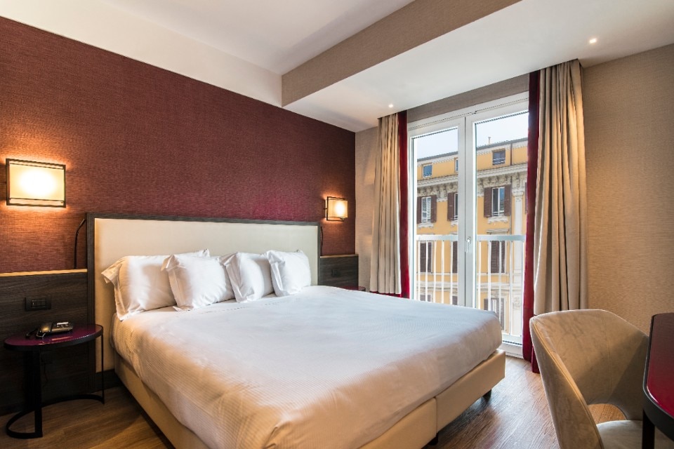 The issue of acoustic and energy efficiency was faced by collaborating with Schüco PWS Italia, choosing windows with reduced view sections made of Schüco LivIng PVC, which lowered the sound by 48 decibels. “The majority of the hotel rooms face the street, so it was necessary to achieve a sound reduction that met hotel standards,” Marcello Ceccaroli concludes.